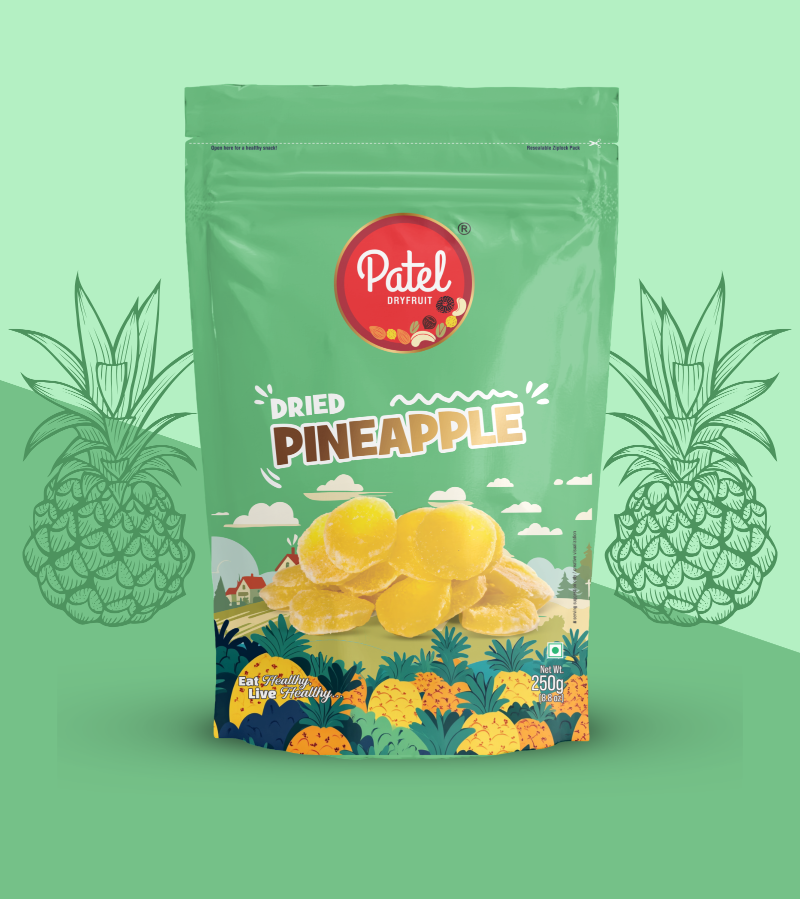 atel Dryfruits Premium Dry Fruit Pineapple – Sweet, Tangy & Nutrient-Rich Dried Pineapple Slices Patel Dryfruits Premium Dry Fruit Pineapple offers naturally dried pineapple slices that preserve the tropical sweetness and tangy flavor of fresh pineapples. Carefully dried to lock in nutrients, this delicious snack is perfect for a healthy treat anytime.
